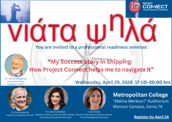 PROJECT CONNECT will host their complimentary νιάταψηλά (Elevated Youth) self‑awareness and career readiness seminar entitled “My Shipping Success Story: How Project Connect Helps Me Navigate It” on 29 April 2026…
