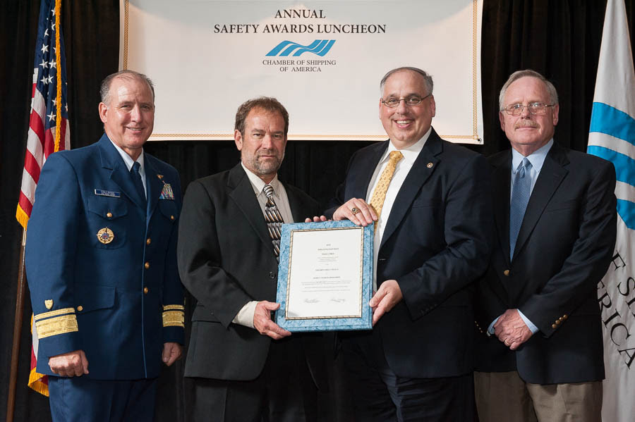 (NEW ORLEANS; June 21, 2016) – Ninety-six Crowley Maritime Corporation owned or managed vessels recently received the Chamber of Shipping of America (CSA)’s annual Jones F. Devlin Awards in recognition of their outstanding safety records in 2015. Each year the CSA grants Devlin Award certificates to manned merchant vessels that have operated for two or more years without incurring a Lost Time Injury (LTI), specifically highlighting the skills and dedication of the crewmembers responsible for safe vessel operations.
