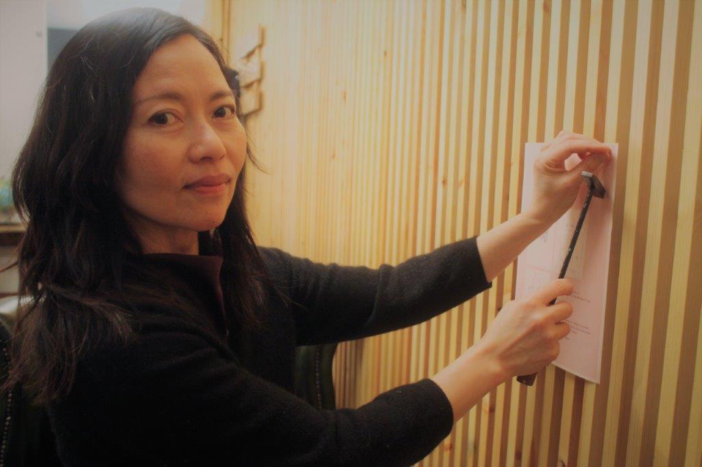 Carolina Ambida prepares the exhibition.