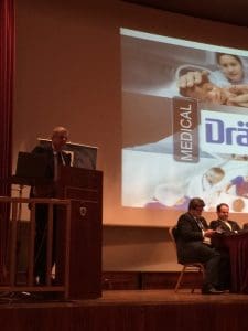 There wee thee main questions by George Xyradakis with equal responses from the panel members, followed by five questions from the audience in the Q&A time, one included ours. Finally there was an interesting presentation by one of the Platimium Sponsor Dräger’s team headed by Manolis Sidirourgos.