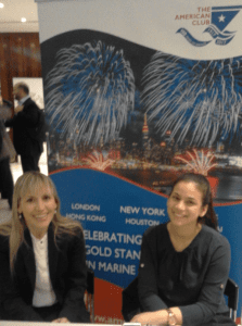 Smiling faces; Anny Papademitriou and Christina Tsimpouklidi at the American Club’s stand
