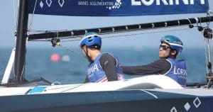 All three of today’s stadium racing winning crew are the progeny of successful, well known Frenchsailing fathers, cousins Bruno and Tim Mourniac are respectively the sons of Philippe (3 times America’s Cup navigator) and Jean Christophe (‘Kinou’ – 1996 and 200 Tornado Olympian who sails on Cheminee Poujoulat) and helm Kevin Peponnet, a 470 Olympic class racer, is son of 1988 Olympic gold medallist Thierry.