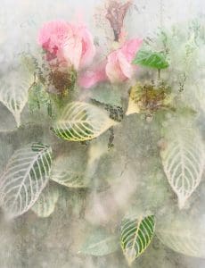 Caroline imbues the images she takes with a sense of mystery by layering – one of her favourite words – elements into a series of abstract, impressionist compositions which explore the world of tropical plants living behind glass.