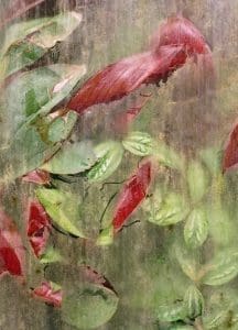 Fox Talbot’s photographs notably included a leaf covered by glass (an image that appeared in The Pencil of Nature, the first book in the new art) and Caroline Gavazzi appropriates such subject matter to breathe into it the vitality and vulnerability of colour, steam and evaporation. Caroline’s aesthetic fashions what looks like ethereally floating foliage. The studies, each a kind of individual ‘sigh,’ establish her mastery of her craft, to the point that she redefines the photographic focus.