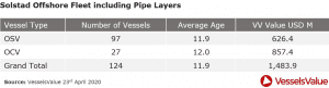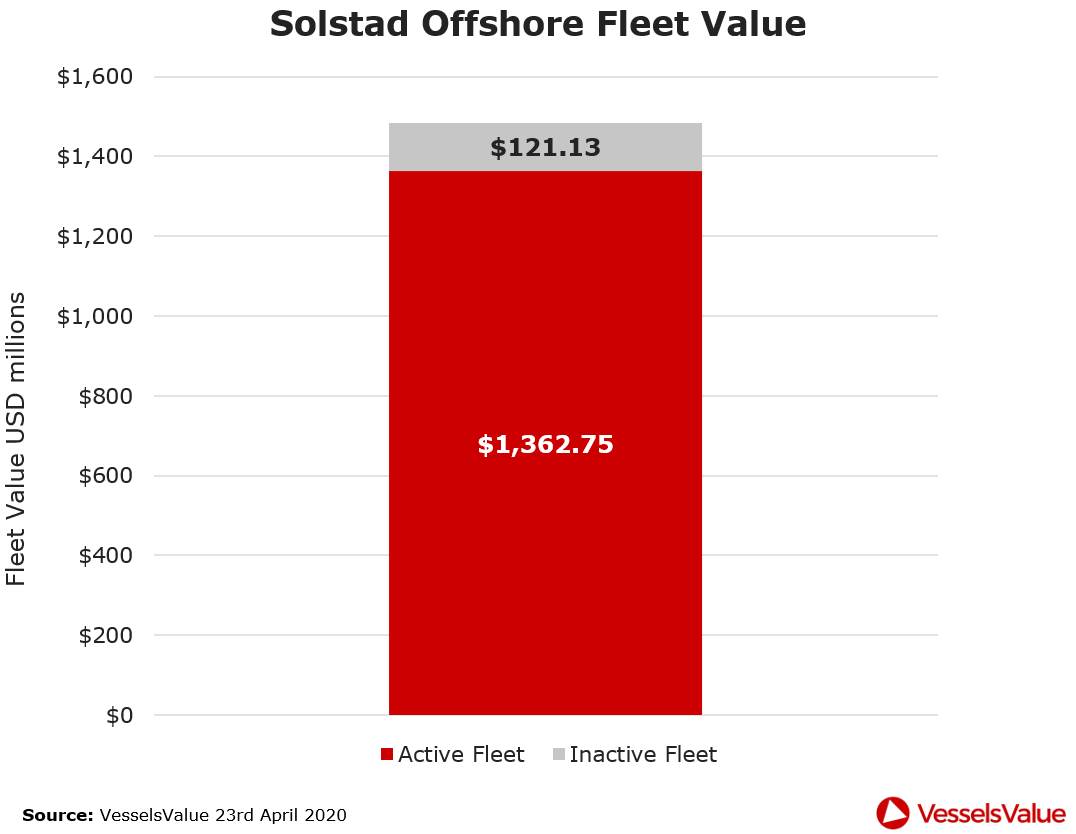 On the 31st March 2020 Solstad Offshore announced they has entered financial restructuring, citing Covid 19 and the continued poor Offshore market conditions. Such a large Norwegian Offshore owner entering restructuring is an important milestone for the sector. As of 23rd April 2020 VesselsValue values the Solstad fleet at USD 1,483.9 bil. See below table.