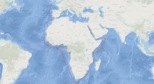 Fugro GIS overview of the 2Africa subsea fibre-optic cable route project, which Fugro is supporting with an extensive one-year survey programme