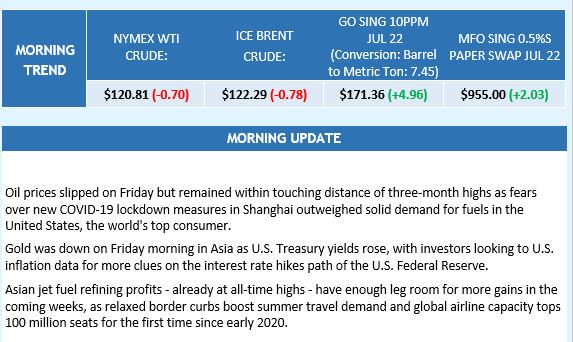 Sing Fuels Morning Report 10th June 2022 by admin June 10, 2022 June 10, 2022 14 views 249 BUNKER MARKET MORNING UPDATE10th June 2022 Prime's Bunkerplus ServicesSing Fuels 0 comments 0 FacebookTwitterLinkedinEmail admin previous post Market report: Inflation still scaring the horses on financial markets with stocks galloping lower next post Signal unveils vision for technology-driven future at 1000-attendee event in Athens You may also like LR – Class News 08/2026: Revised speed trial... April 21, 2026 Sing Fuels Morning Report – 21 April 2026 April 21, 2026 Annual marine autonomy study reports new USV ‘arms... April 20, 2026 StormGeo strengthens Bunker Management platform with real-time pricing... April 20, 2026 Sing Fuels Morning Report – 20 April 2026 April 20, 2026 NYK Line, Golden Island, and Yara Clean Ammonia... April 20, 2026 LR – Engine Retrofit Report: Applying alternative fuels... April 17, 2026 Market report: Middle East de-escalation gathers pace April 17, 2026 Monaco joins French Riviera set for The White... April 17, 2026 Weekly Brief: What Does—and What Doesn’t—Keep CEOs Up... April 17, 2026 Leave a Comment Cancel Reply Save my name, email, and website in this browser for the next time I comment. Δ