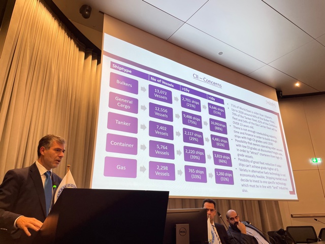 Final speaker, the very eloquent John N. Cotzias, director Assets and S&P projects at Xclusiv Shipbrokers with well construed slides and controlled views on the future of Shipping and regulators, a pragmatist too. and what a theme: “CII impacts on Shipping Markets”