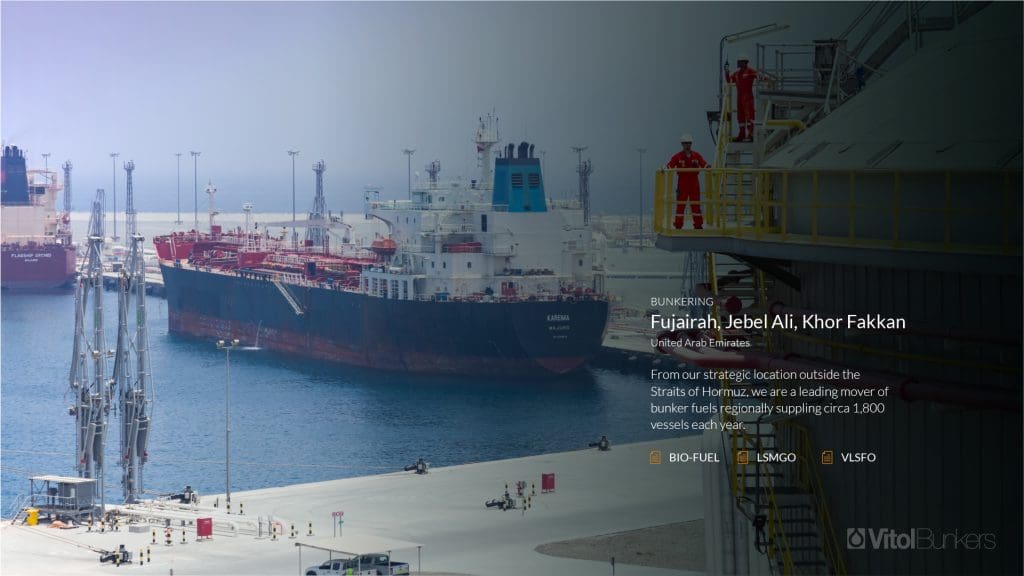 The deliveries coincided with COP28. Vitol Bunkers thanks the port of Fujairah and the government of the UAE for their progressive sustainable policies that enabled the delivery to take place.