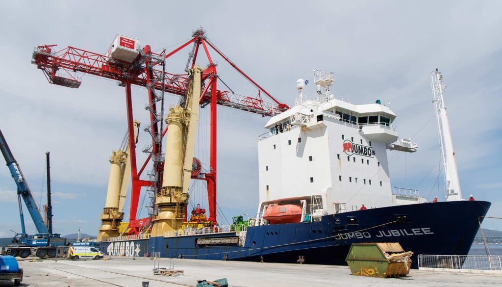 The 932 tonne structure was transported to the west-facing freight port following a 1 day journey from Cork in Ireland, where it was built.