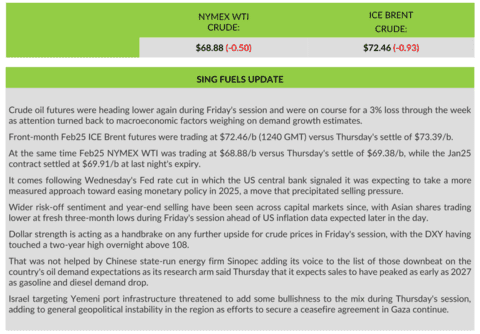 Sing Fuels Daily Report – 20 December 2024 by admin December 20, 2024 December 20, 2024 30 views 262 Brent CrudeSingaporeSingFuelsWTI 0 comments 0 FacebookTwitterLinkedinEmail admin previous post WSC Board elects new Chair and Vice Chair next post OceanPal Inc. Reports Financial Results for the Third Quarter and Nine Months Ended September 30, 2024 You may also like BAAFEx returning in 2027 as Asia Strengthens Position... April 22, 2026 HOT PORT NEWS from GAC April 21, 2026 Maritime Coalition Representing Half the World’s Fleet Calls... April 21, 2026 Christina Tsorba of Vergina TV questions All About... April 21, 2026 Vessev Unlocks Waterways as the Next Layer of... April 21, 2026 Immersion suit rises to challenge for faster protection April 21, 2026 LR – Class News 08/2026: Revised speed trial... April 21, 2026 Market Report: choppy week ahead as Middle East... April 21, 2026 Sing Fuels Morning Report – 21 April 2026 April 21, 2026 Annual marine autonomy study reports new USV ‘arms... April 20, 2026 Leave a Comment Cancel Reply Save my name, email, and website in this browser for the next time I comment. Δ