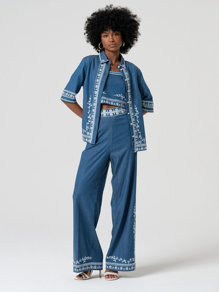 Elsewhere, tropical florals and earthy hues appear in maxi dresses and wide-legged trousers, offering a relaxed but put-together summer uniform.