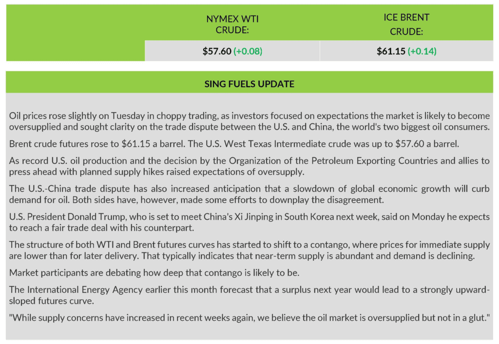Sing Fuels Daily Report – 21 October 2025 by admin October 21, 2025 October 21, 2025 12 views 247 Brent CrudeOPECSingaporeSingFuelsWTI (West Texas Intermediate) 0 comments 0 FacebookTwitterLinkedinEmail admin previous post HOT PORT NEWS from GAC next post Blue Reborn: S|Style – Denim Lab Reimagines Jeans at Milan Fashion Week You may also like Transforming The Red Sea Corridor Into A Pivotal... April 22, 2026 Diana Shipping Inc. Announces Date for its 2026... April 22, 2026 HOT PORT NEWS from GAC April 22, 2026 AHEPA Invites You to Hermes Expo 2026 April 22, 2026 Statement by IMO Secretary-General on the recent attacks... April 22, 2026 Pacific Environment applauds Coastal Sustainability Alliance “Milk-Run” proof... April 22, 2026 Baleària begins sea trials of the fast ferry... April 22, 2026 Blockade and Capture: the significance of M/V TOUSKA April 22, 2026 A Riviera Vision with Purpose: Inside Monte-Carlo Fashion... April 22, 2026 The Ocean Is Sending an Operational Warning –... April 22, 2026 Leave a Comment Cancel Reply Save my name, email, and website in this browser for the next time I comment. Δ