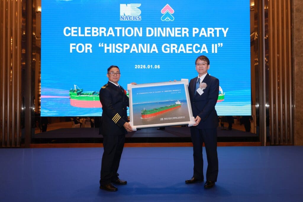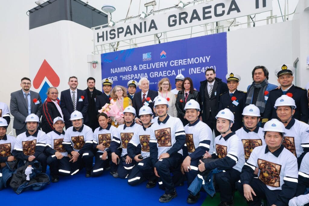 The delivery and naming ceremony was held on 6 January 2026 and the Cypriot-flagged vessel was named Hispania Graeca II