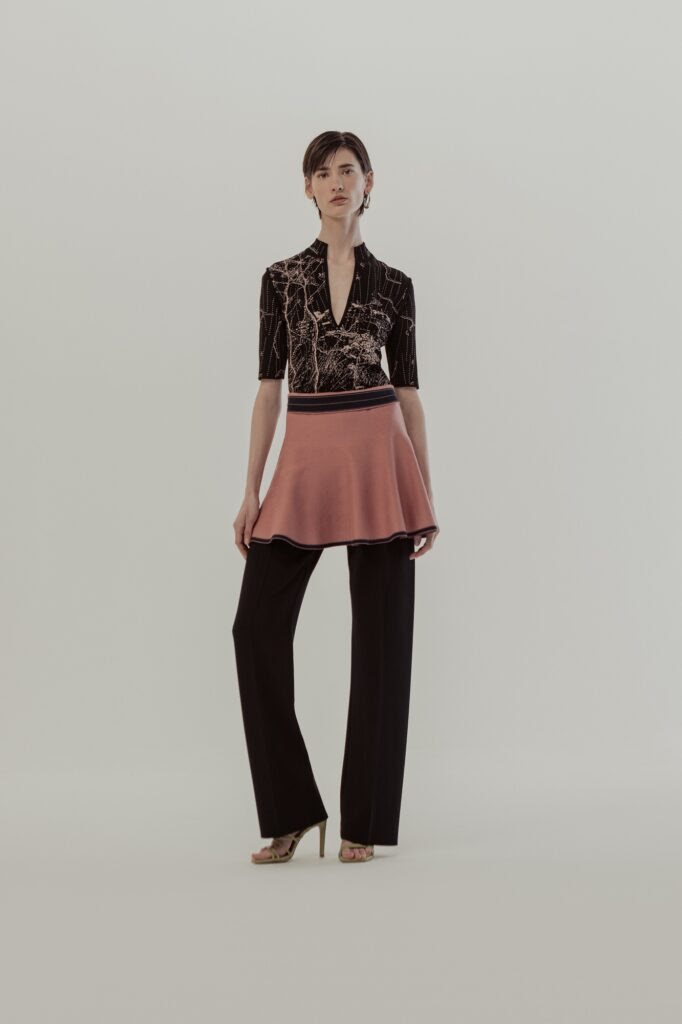 Adding dimension to this creative vision, RallegRati itself is a relatively young Italian luxury knitwear brand born in 2020 from the creative partnership of Filippo and Ana Zeverino, rooted in a family tradition of craftsmanship dating back to the 1970s in Puglia. The name RallegRati, meaning “rejoice,” channels a philosophy of optimism and delight woven into every piece.