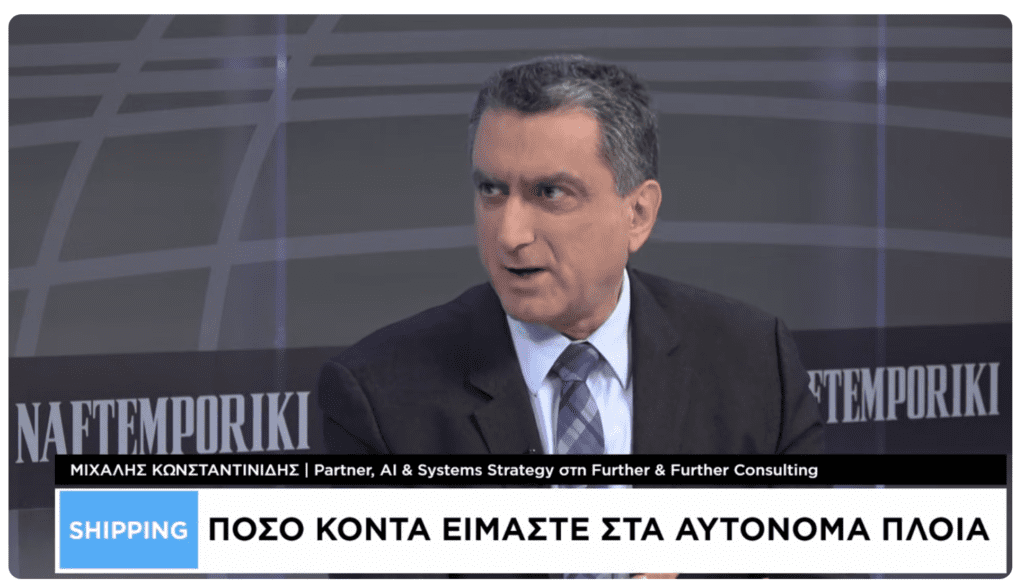 Mike Konstantinidis, my partner in AI & Systems Strategy at Further & Further, was on NaftemporikiTV yesterday discussing the need for AI strategy in maritime leadership.