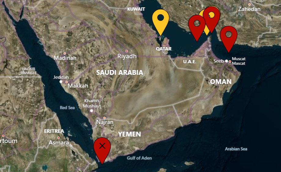 | UKMTO 004-26 | SUSPICIOUS ACTIVITY | Mar 01, 2026 | UKMTO has received a report of an incident 2NM north of Oman. The crew have been evacuated and safe. Authorities are investigating. | |