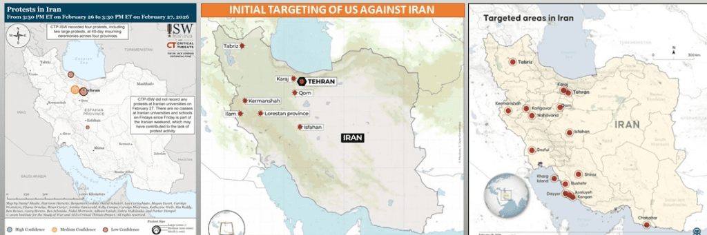 - It was published that Iranians continued to hold anti-regime protests during the 40-day mourning ceremonies across Iran. CTP-ISW recorded four protests, including two large protests, at 40-day mourning ceremonies across four provinces on February 27. CTP-ISW defines large protests as protests with over 1,000 participants. The 40th day of mourning marks the end of the initial mourning period and is often observed with public commemorations and gatherings in Shia Islam. Numerous anti-regime protests have taken place ceremonies in recent weeks.