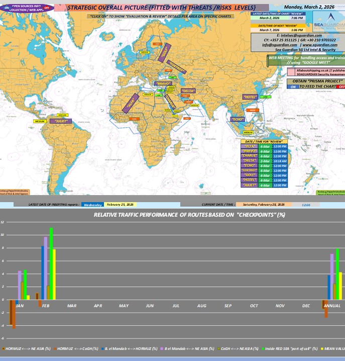 - This document has been approved for distribution by SEA GUARDIAN S.G. Ltd / Intelligence Department. The provided Intel and Information derives from open sources, the Institute for the Study of War (ISW), the Joint Maritime Information Center (JMIC) and the United Kingdom Maritime Trade Operations (UKMTO) respective Web Pages, as well as products retrofit the company’s Strategic/Operational and Security situational awareness processes, for risks and threat assessment/impact to the Maritime Security. All rights reserved, “no part of this risk assessment may be reproduced in any form (electronic, mechanical, paper, or other means) without written permission by SEA GUARDIAN S.G. Ltd, which maintains the rights for personal data of the document writers”. Under no circumstances can SEA GUARDIAN S.G. Ltd be held responsible for any loss or damage caused by a reader’s reliance on information obtained by this assessment, especially on its firms, company’s management, or individual decision-making.