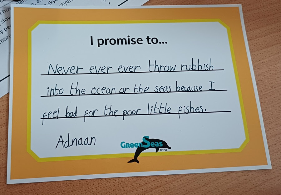 To wrap up, the children took a short quiz to check their learning and filled in their Ocean Ambassador Promise cards, proudly pledging the actions they’ll take to help keep our waterways clean.