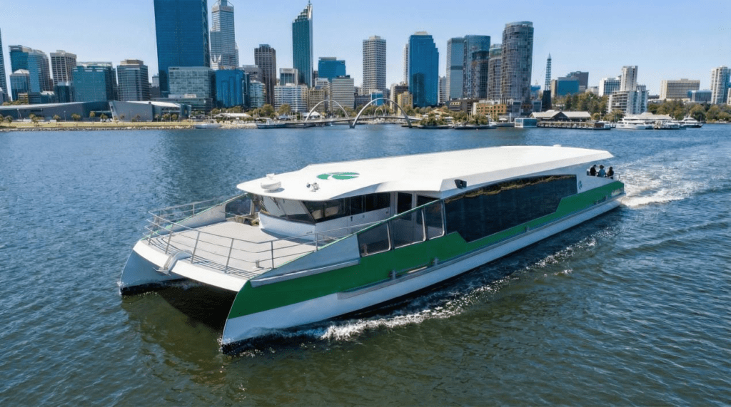 The attached image shows an artistic impression of the new battery-electric ferries for operation on Perth’s Swan River.