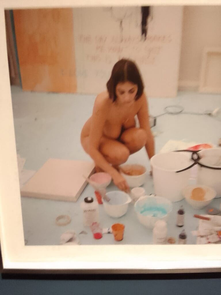 In the corridor gallery at Tate are displayed the 10 Polaroids of Self-Portrait 12-11-01 showing her naked while intent in 2001 on painting, surrounded by materials. Ten more recent photos include her body shown immediately after surgery and her stoma.