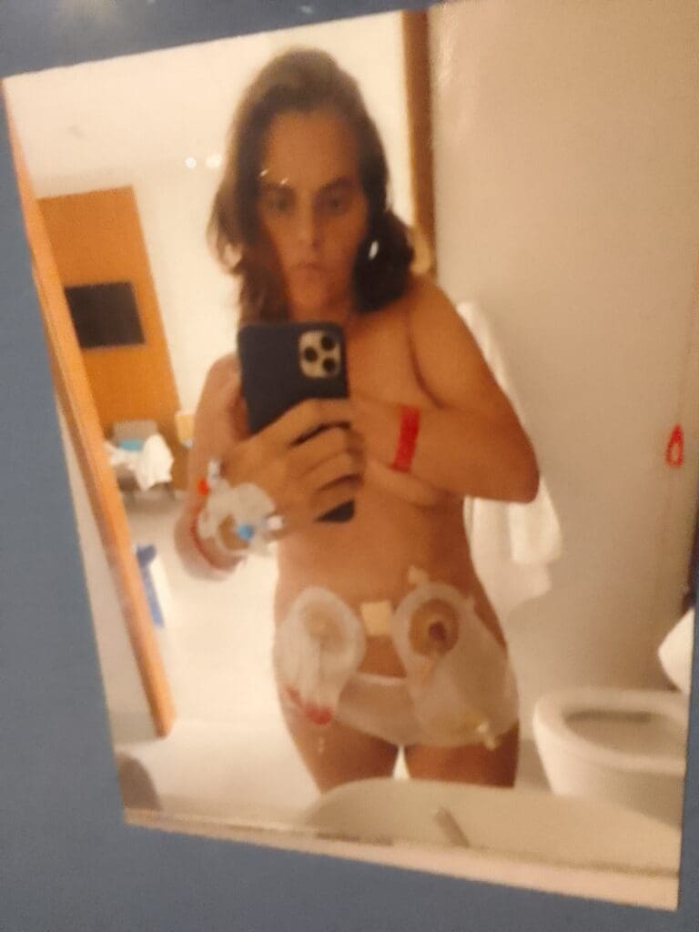 Now ‘bed’ for her has a further significance, as her health problems confine her to spending much of her time prone. Her bladder and parts of her intestine were removed after her cancer diagnosis and she underwent a hysterectomy. She was fitted with a stoma (an opening in the abdomen to dispose of waste) which is tiring but, she says, “the good news is I’m still here.”