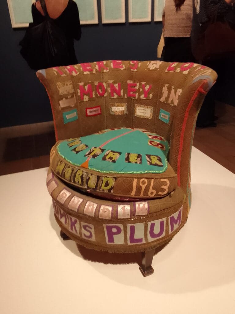 There’s a lot of money in chairs, 1994. By Tracey Emin. Appliquéd armchair.
