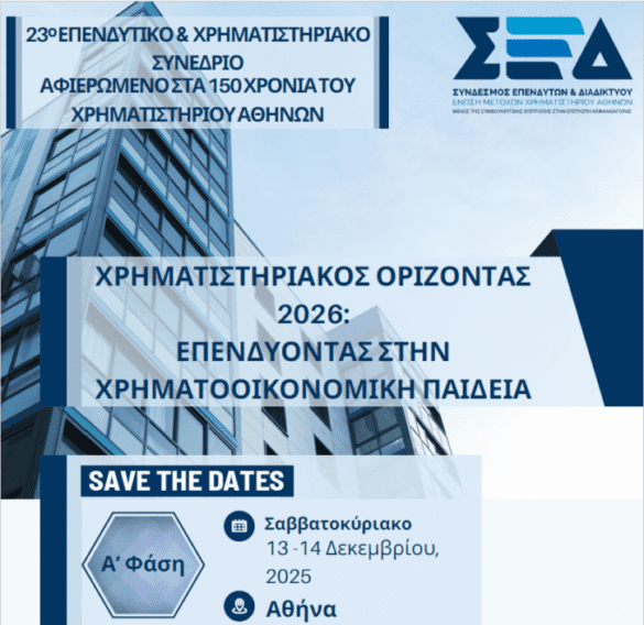 INVITATIONThe Investors & Internet Association invites you to23rd Investment & Stock Market Conference,the first phase of which will take place this weekendDecember 13-14, 2025, at the ELEKTRA PALACE hotel,Navarchou Nikodimou…